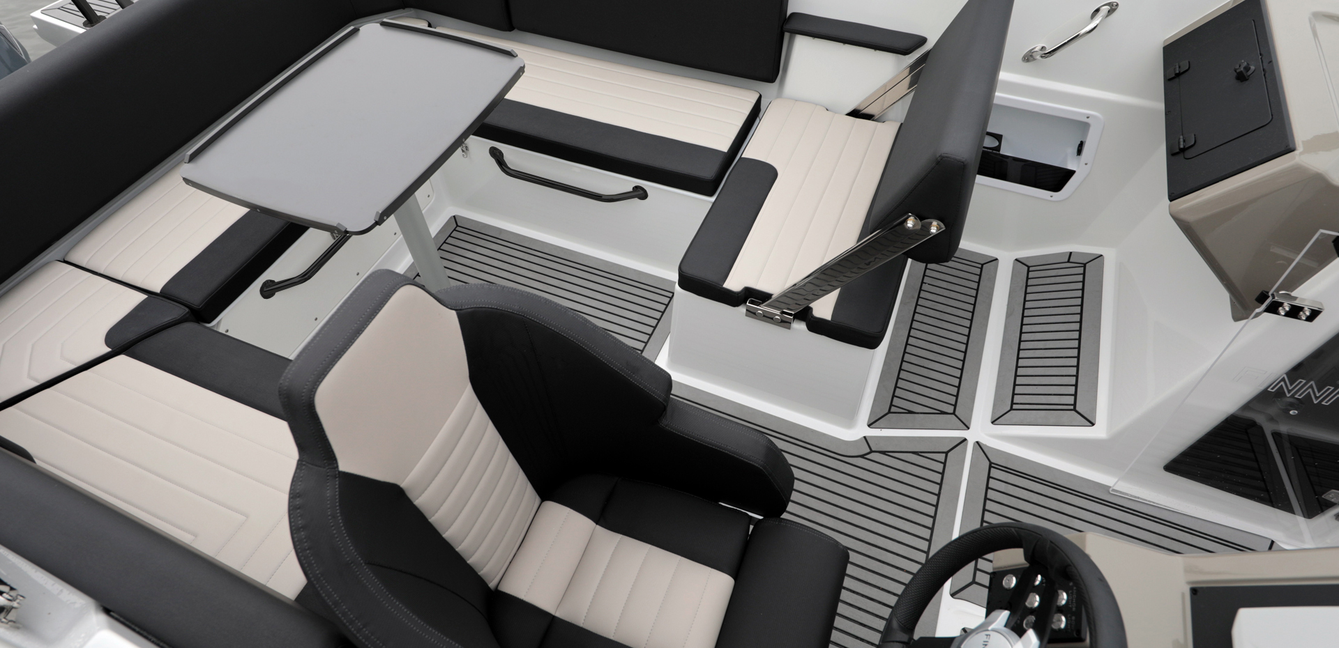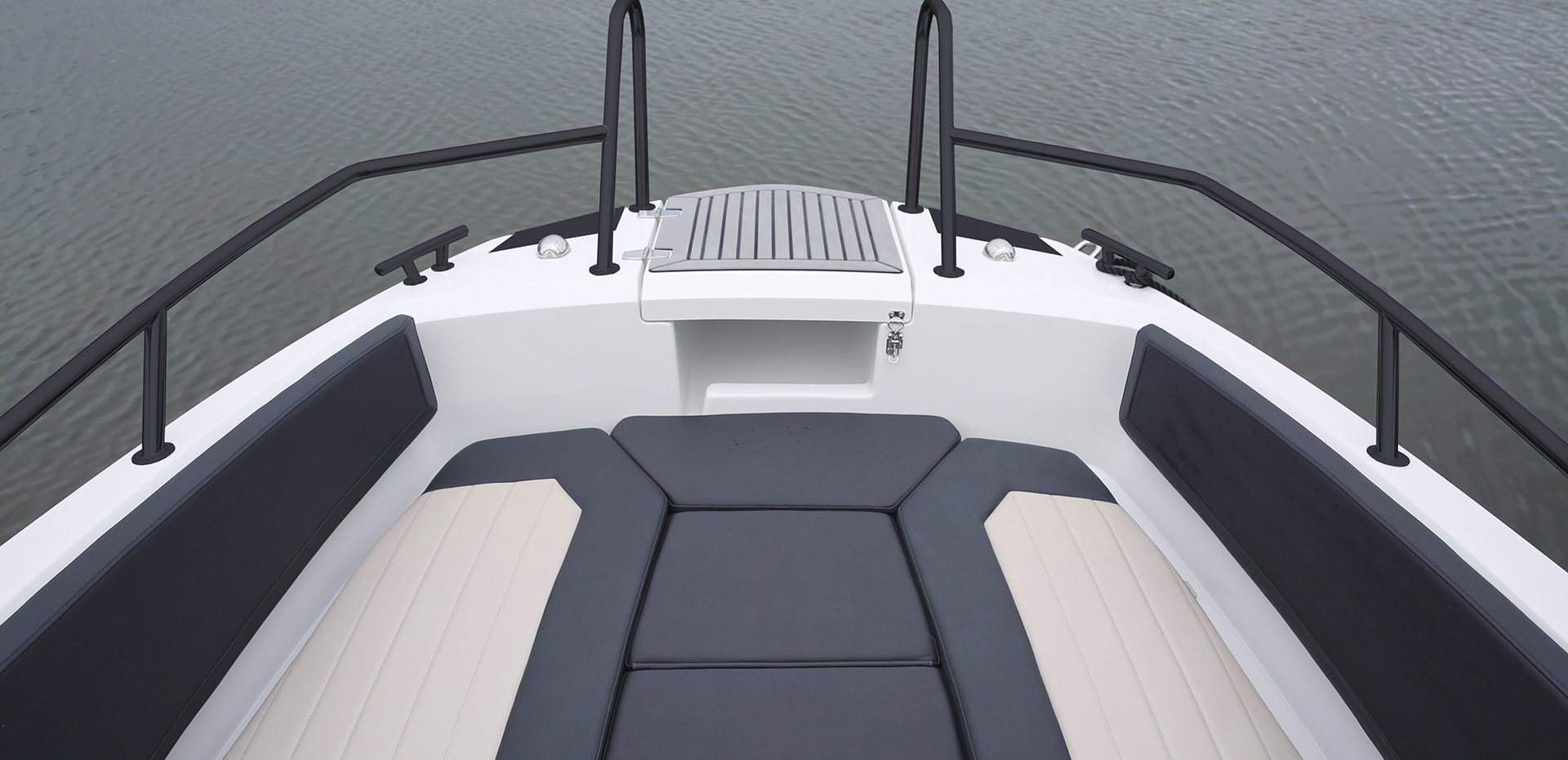 The new Finnmaster R6 is a versatile bow rider for sunny summer days. This boat is ideal for day cruising, water sports, transportation or for number of other purposes to enjoy a day at sea. The R6 is easy to move around, and offers plenty of comfortable seating areas, either on the large U-sofa in the cockpit, or in the bow. The fill-in cushions allow you to form a sunbed for both of these seating groups. There is plenty of storage space beneath the benches for water skis and many sensible details that make boating easy and safe for the whole family. The Finnmaster R6 is the perfect boat that allows you to escape from everyday life. Can be delivered ready to go with trailer and Yamaha outboard motor (advice 130-200 hp).