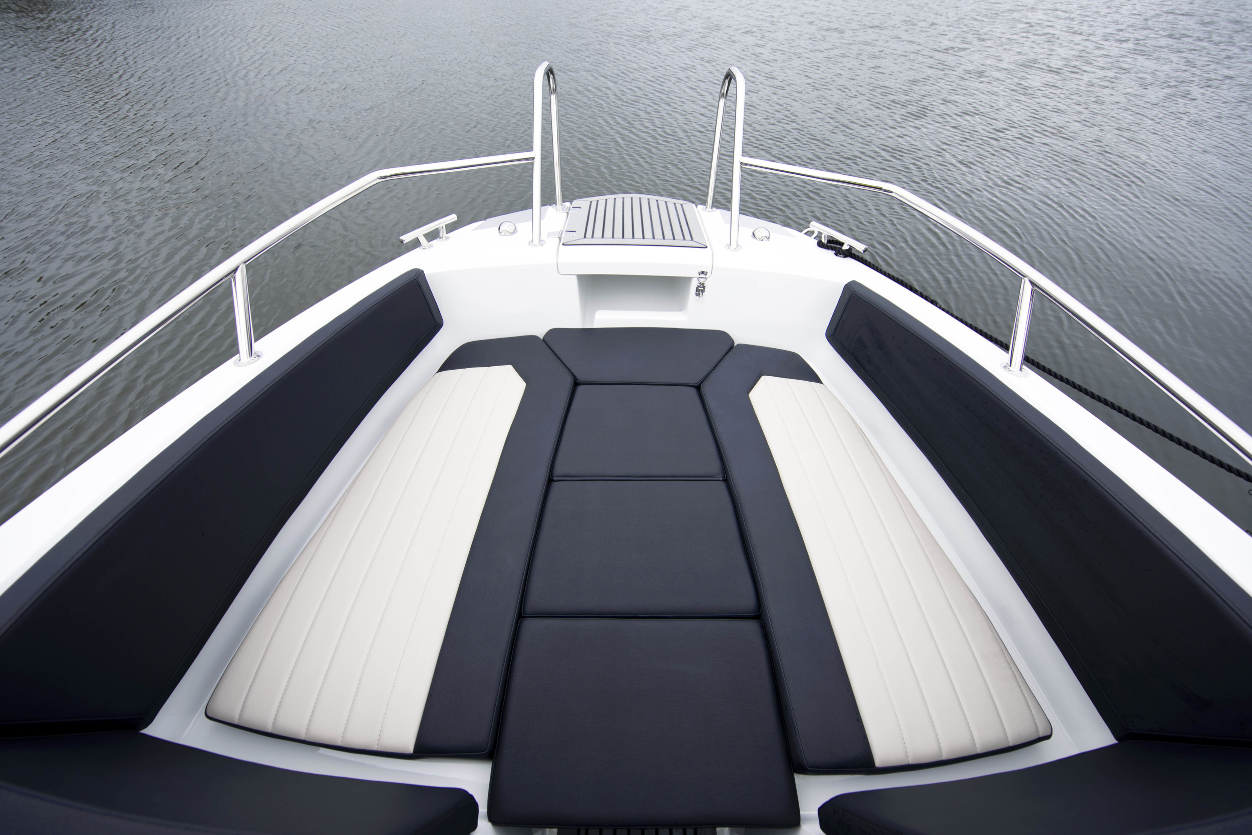 The new Finnmaster R6 is a versatile bow rider for sunny summer days. This boat is ideal for day cruising, water sports, transportation or for number of other purposes to enjoy a day at sea. The R6 is easy to move around, and offers plenty of comfortable seating areas, either on the large U-sofa in the cockpit, or in the bow. The fill-in cushions allow you to form a sunbed for both of these seating groups. There is plenty of storage space beneath the benches for water skis and many sensible details that make boating easy and safe for the whole family. The Finnmaster R6 is the perfect boat that allows you to escape from everyday life. Can be delivered ready to go with trailer and Yamaha outboard motor (advice 130-200 hp).