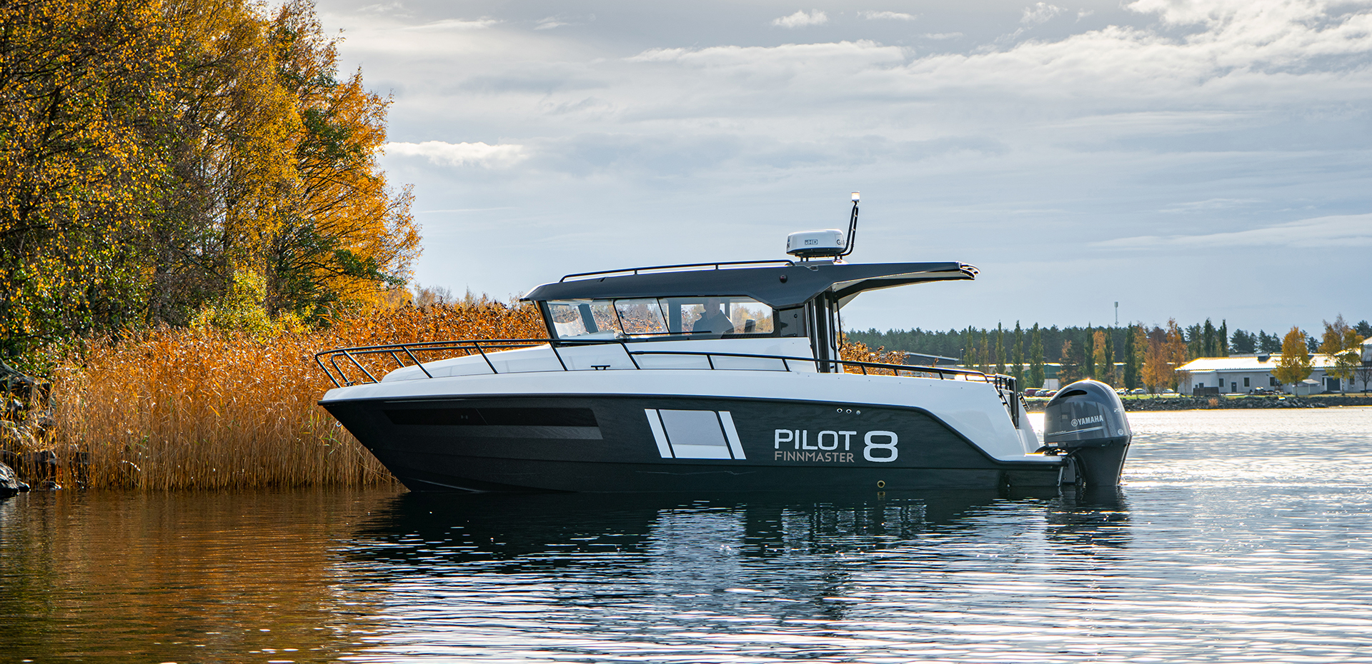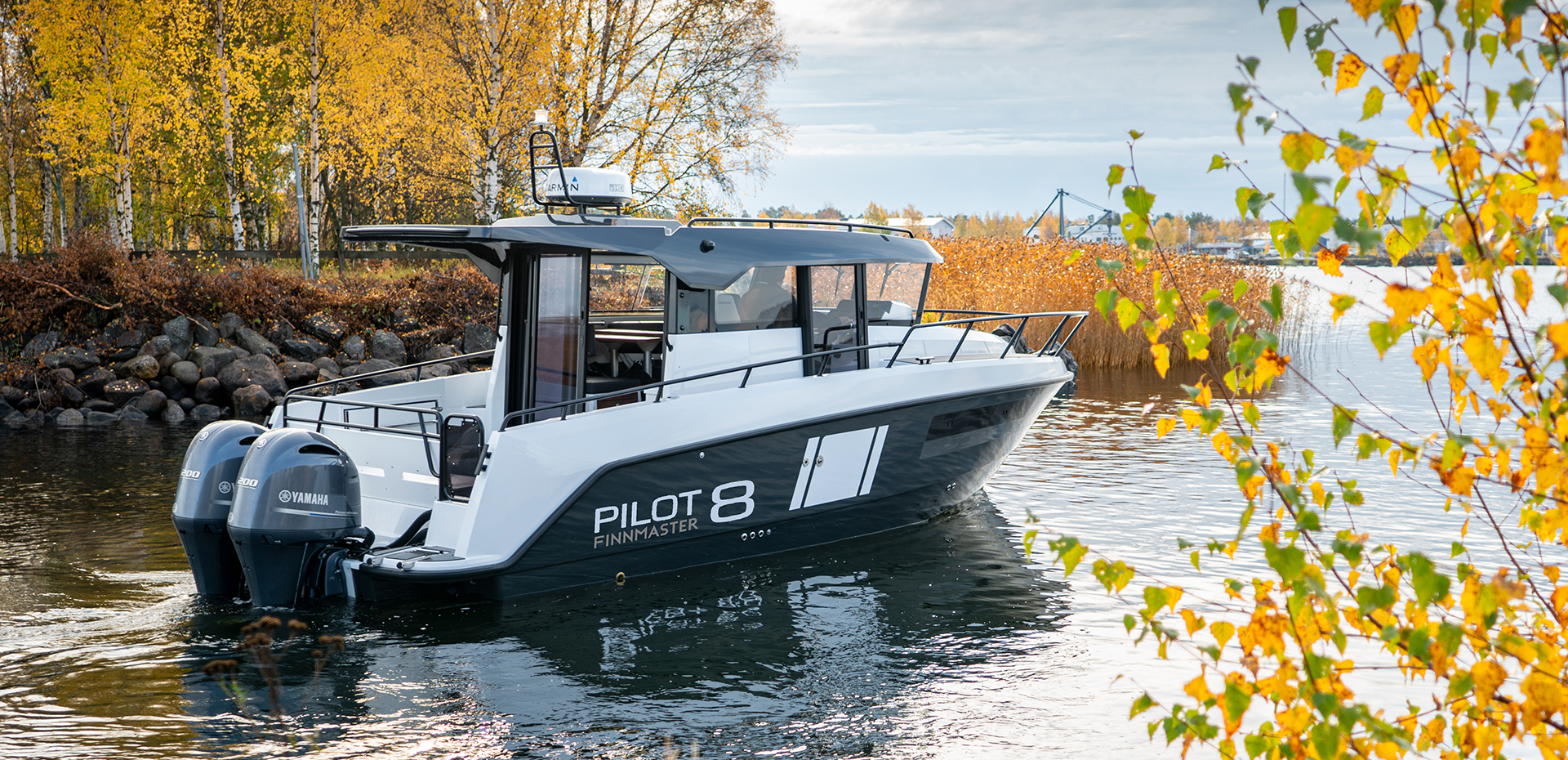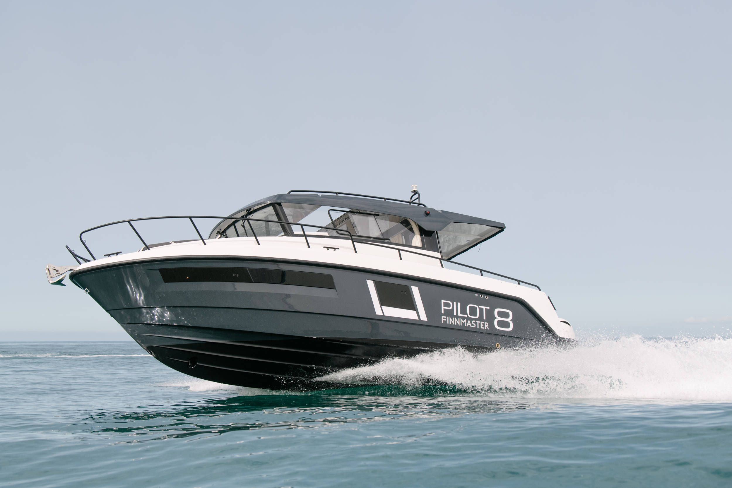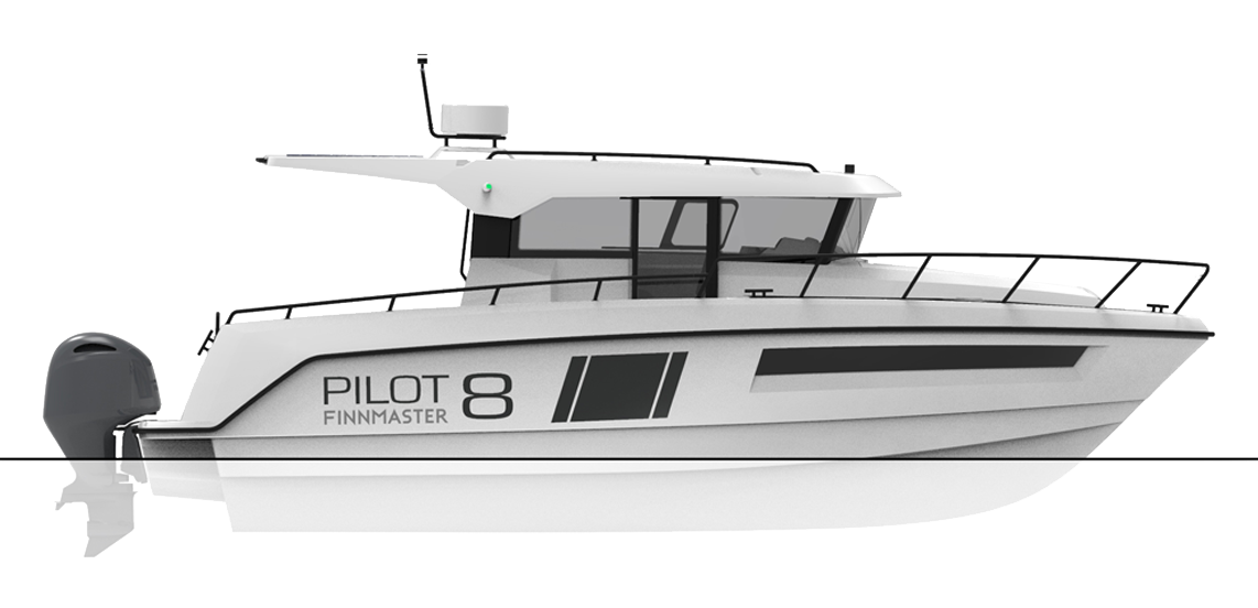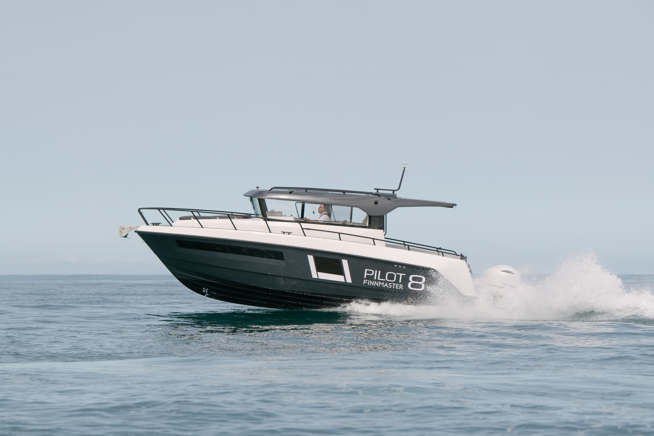 The Finnmaster Pilot 8 is our largest cabin boat – a real multi-purpose boat. Whether you’re looking for a SUV boat, fishing boat or weekend boat where the whole family can stay overnight – this is just the right motorboat for you. The boat’s redesigned extended roof provides protection from rain and sunshine for those staying in the aft deck. The spacious wheelhouse has a large full-width sunroof and a four-person dinette, and a well-equipped galley for travel comfort. At the forward cabin, you will find plenty of storage space as well as a large, separate toilet and sleeping berths for four adults. The boat has versatile and comprehensive standard equipment, which includes, e.g., Yamaha fully electric steering and optional Yamaha autopilot and joystick control. Finnish quality for a competitive price. Can be delivered ready to go with trailer and Yamaha outboard motor (advice 250-400 hp).