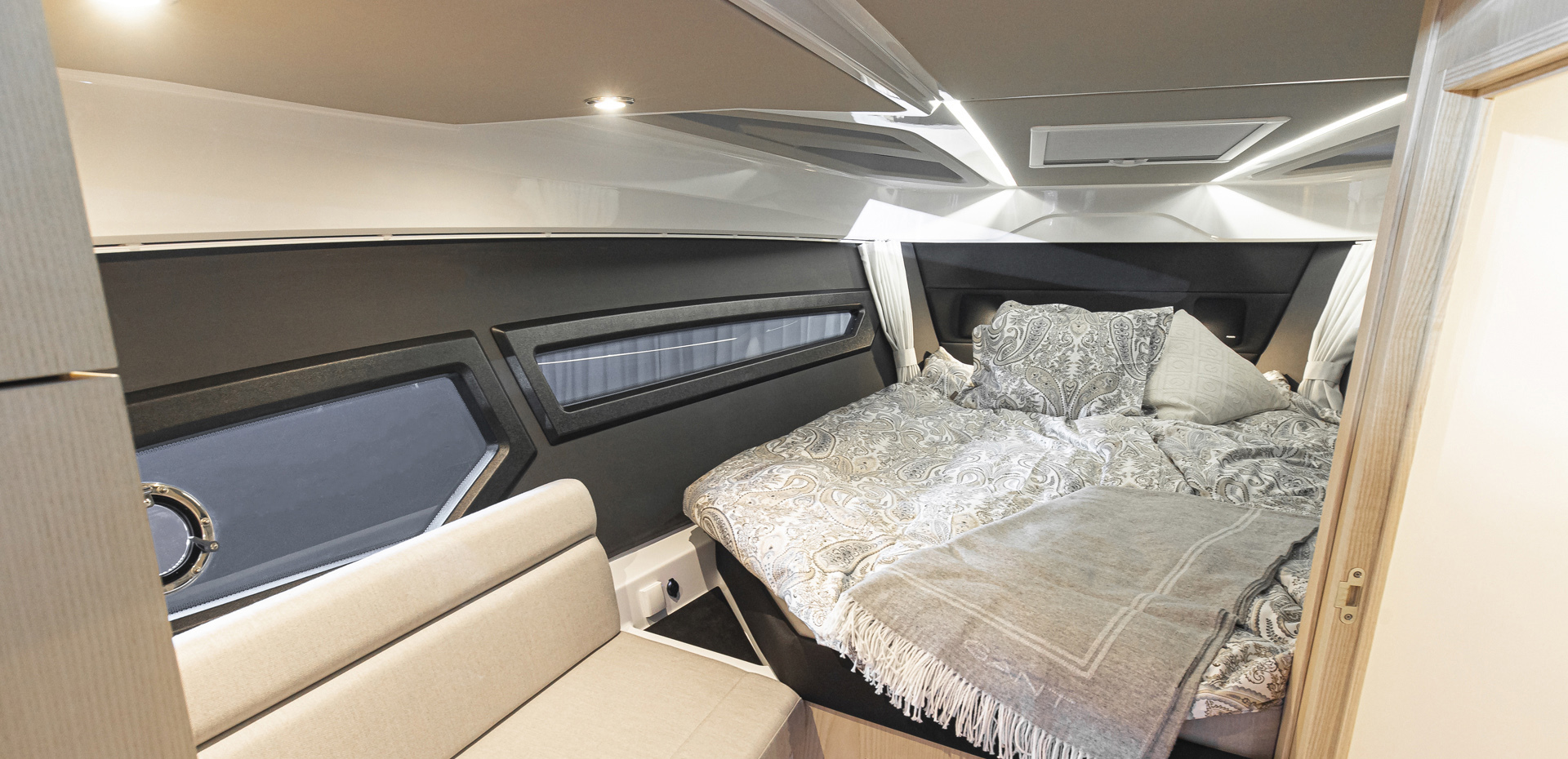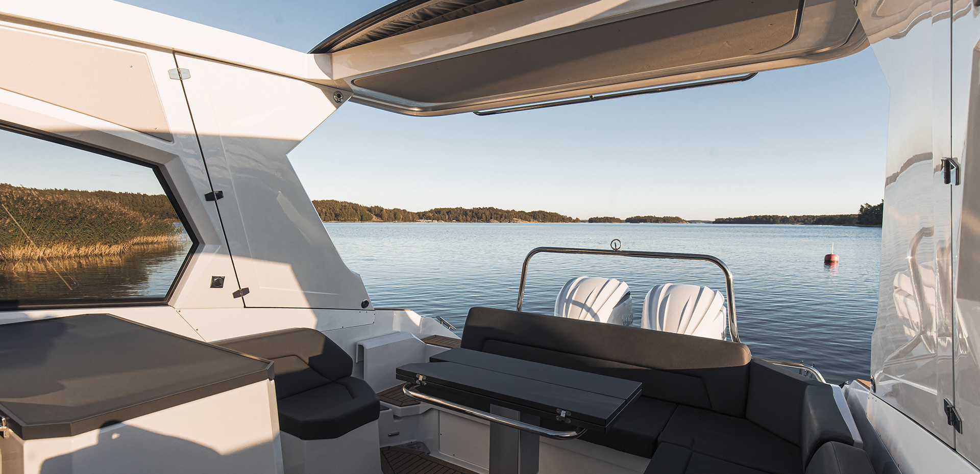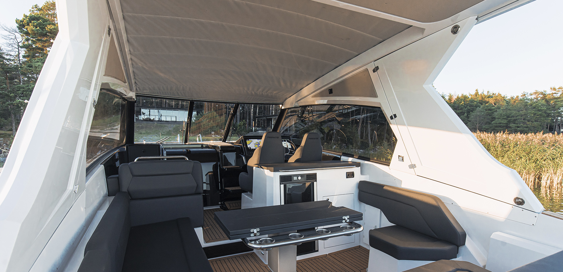 NIEUW: Met de nieuwe Finnmaster T9 ST wordt het varen naar een hoger niveau gebracht. Dankzij het (elektrische) schuifdak heb je de keuze om wel of niet met open dak te varen. Daarnaast geeft de kuip nu een extra ruimte aan boord waar je ook ’s avonds eenvoudig alles kan afsluiten zodat er meer leefruimte ontstaat. De T9 ST is een ruime en luxe daycruiser met veel praktische en comfortabele oplossingen aan boord. De grote panoramische ramen zijn gemaakt om onbelemmerd van het uitzicht te genieten.