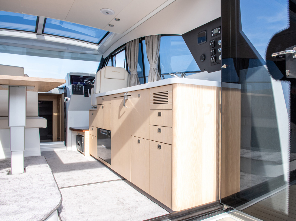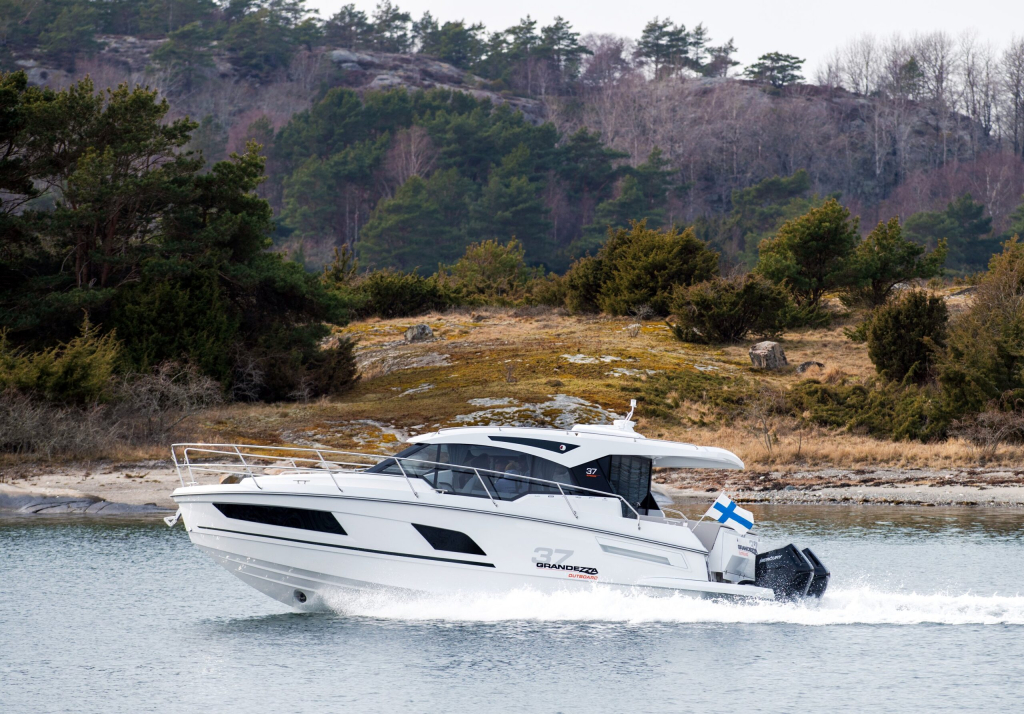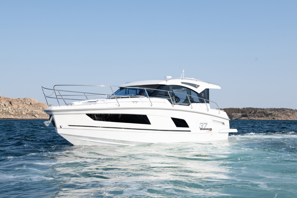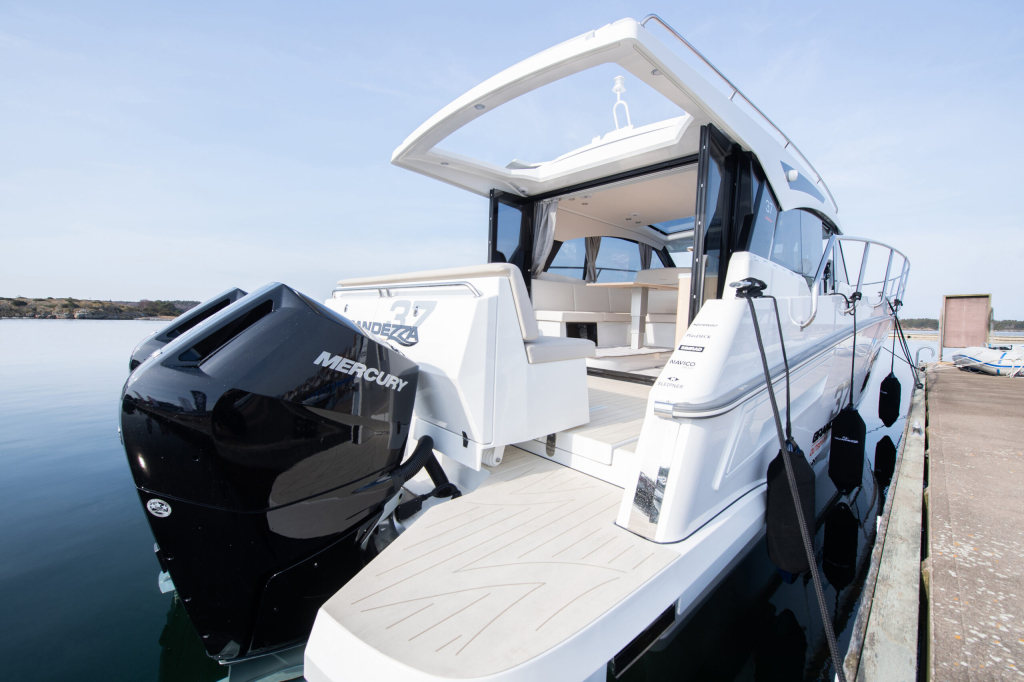 The Grandezza 37 outboard is a true eye catcher with her elegant lines. The saloon and aft cockpit arrangement offer a generous entertaining area. The impressive design, extraordinary ease of handling and the inviting interior make every voyage both exciting and relaxing.