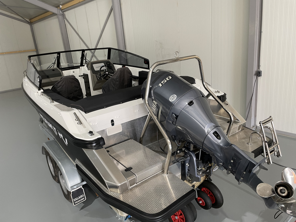 Schitterende stoere Husky R7 (Finnmaster) aangeboden in staat van nieuw met Yamaha 150pk. Wij hebben deze een aantal jaren geleden mogen leveren aan de huidige eigenaar en heeft er met veel plezier