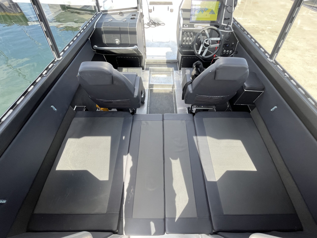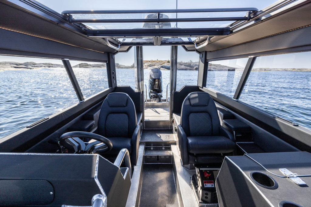 The C26 is equipped with suspension seats, rugged rubber non-slip mats, substantial grab bars, and a large glass sunroof, making it a robust choice for professional use in any season. Ergonomics have been prioritized at the helm, creating a leading driving environment.
