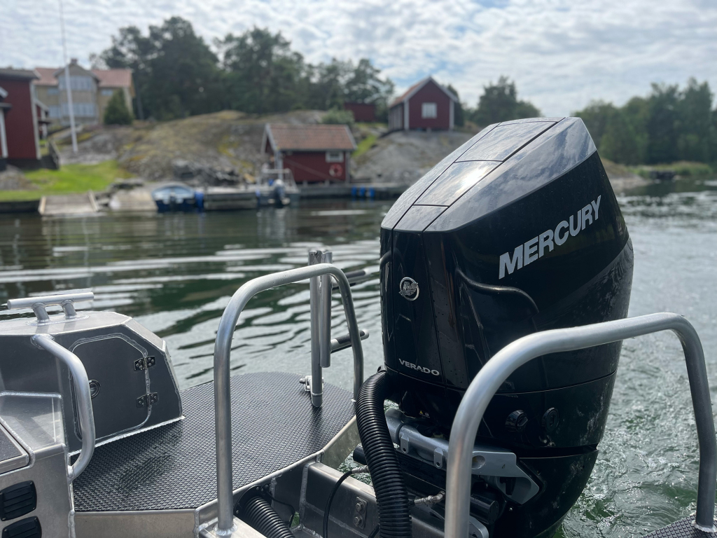 Standard features include a 16-inch plotter, a light rig from Vision X, a 4 kW heater, and a bow thruster and windlass from Sleipner. A heavy-duty 125 mm fender strip surrounds the entire boat, underscoring its durability. The Lynxmar C26 is C-rated for up to 8 passengers, and the top engine option is the powerful Mercury V10 with 400 HP.
