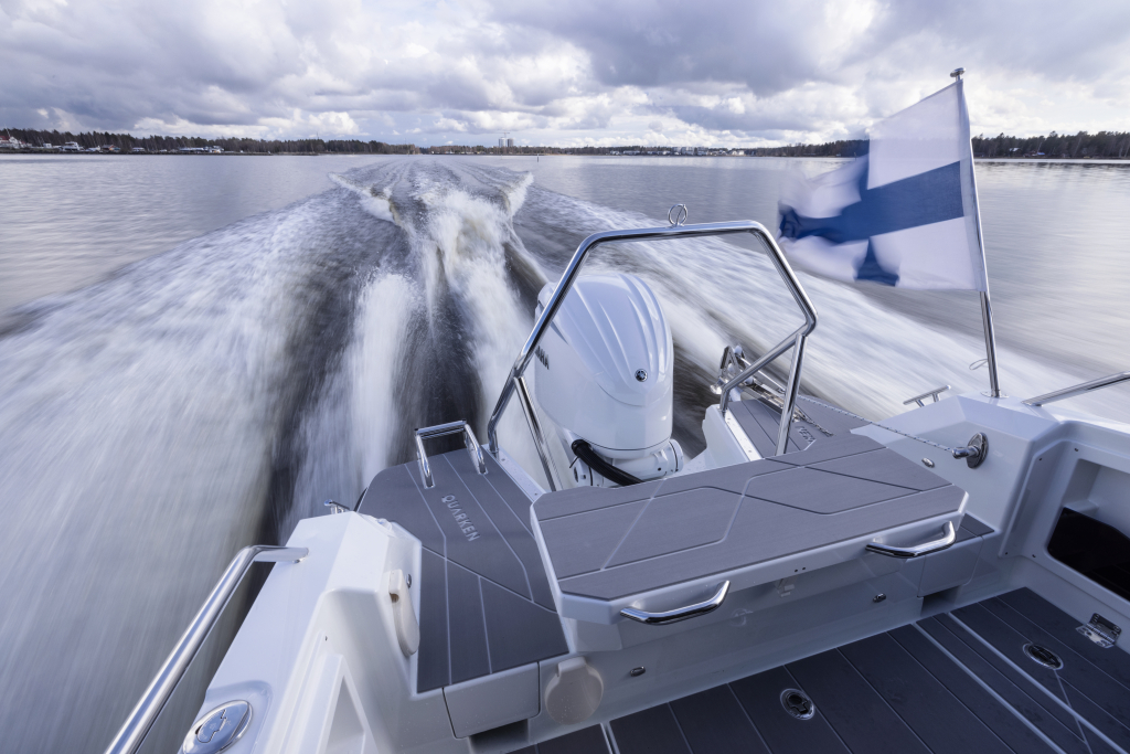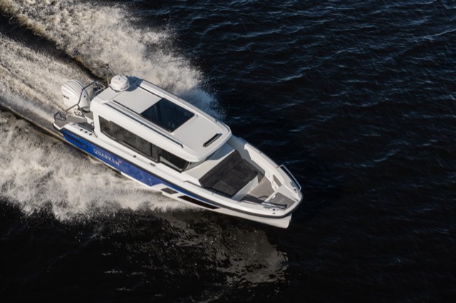 De Quarken 27 Cabin is een opvallende verschijning in Nederland. De 27 Cabin is een heerlijke boot voor comfortabel en aangenaam varen en is voorzien van een dubbele-stepped-hull voor nog meer comfort aan boord. Vaarklaar en standaard zeer compleet af fabriek voorzien van een Yamaha 300pk.
