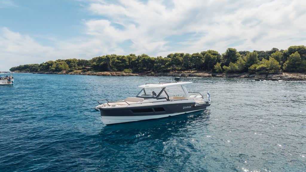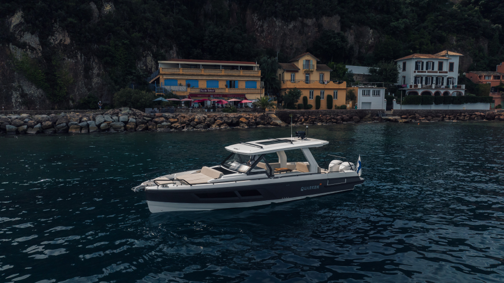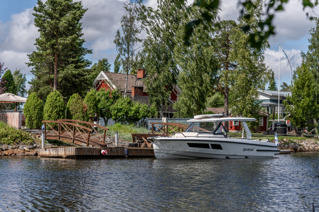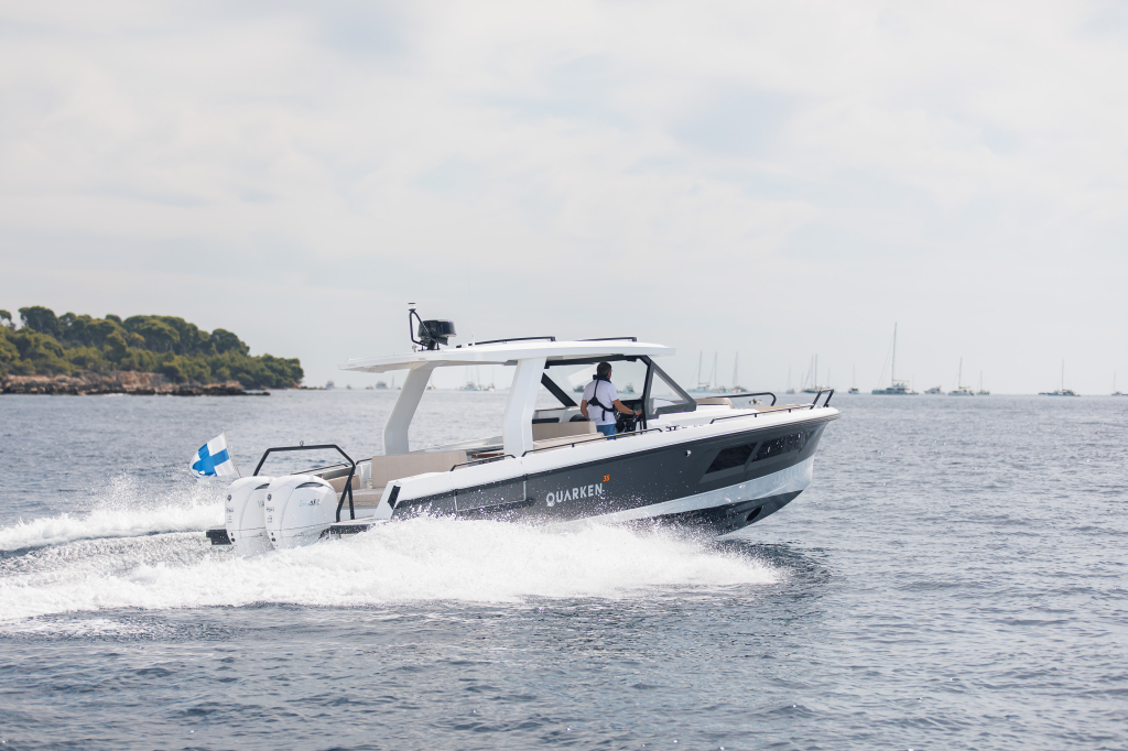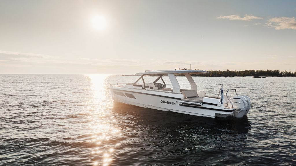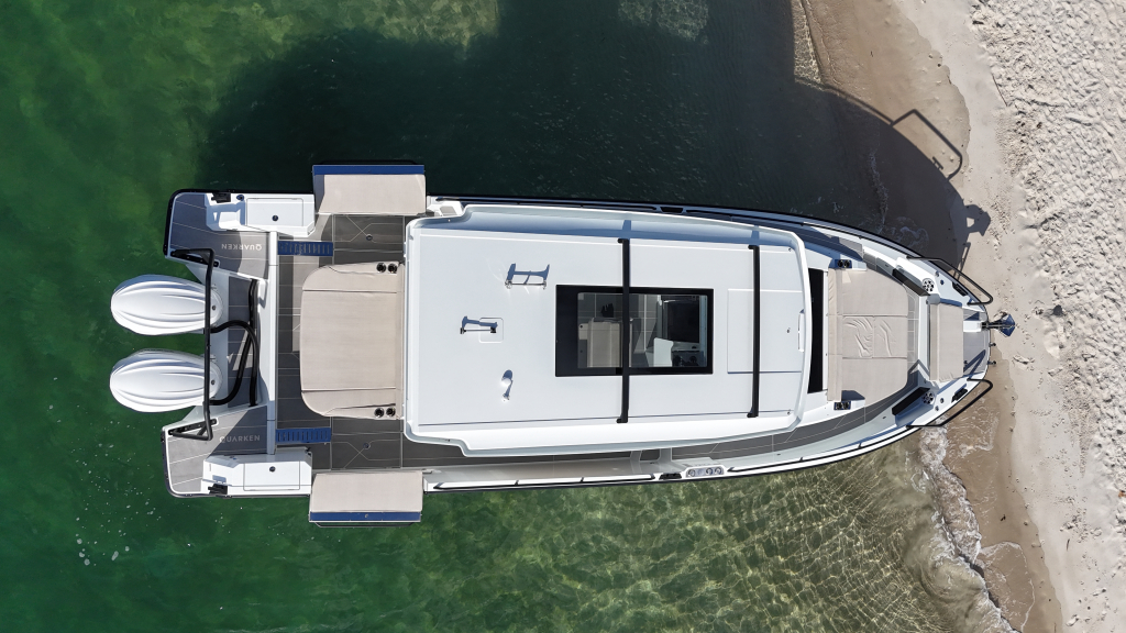 The 35 Sport Tourer shows how sophisticated Nordic design and solutions can be combined with superior performance for an unforgettable on-water experience. Cleverly designed seating arrangements offer plenty of relaxation space. The standard wet bar is well-equipped with storage space, a fridge and fresh water. The Quarken 35 Sport Tourer is designed, produced and assembled in Finland. The twin-step hull is manufactured by vacuum infusion technology that offers benefits as thickness control of the GRP and quality consistency in the production process. The outcome is a strong, nimble and lighter hull with lower fuel consumption.