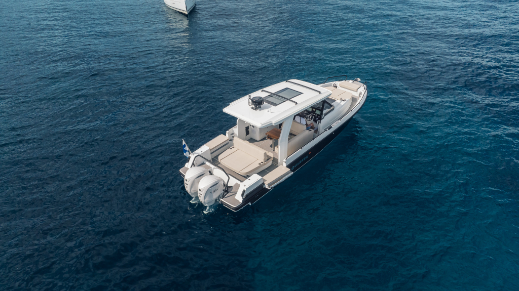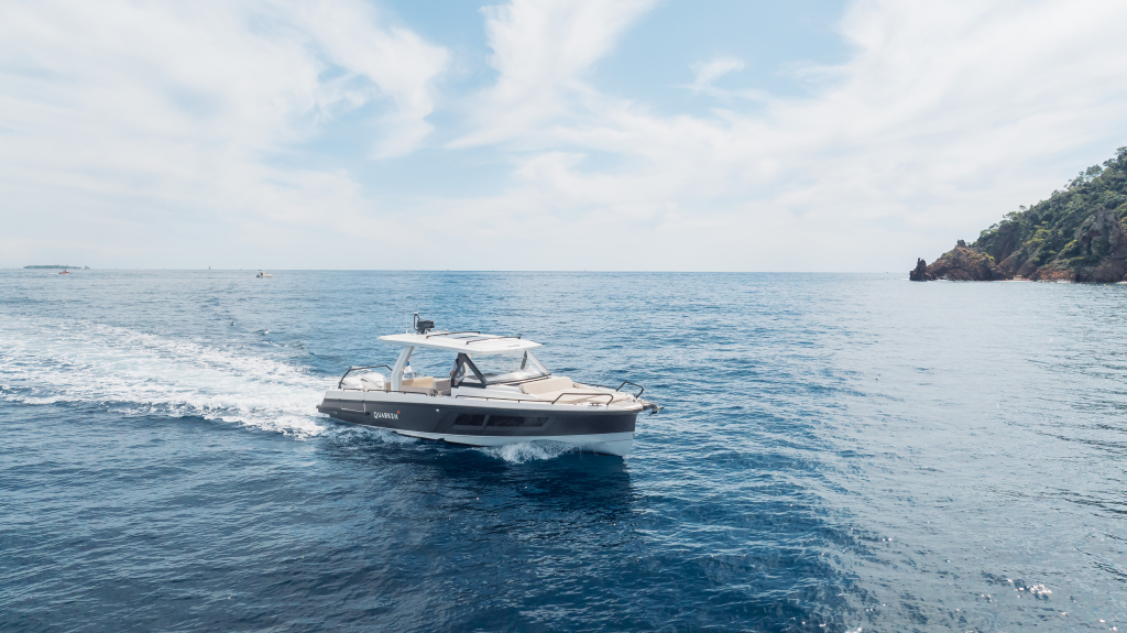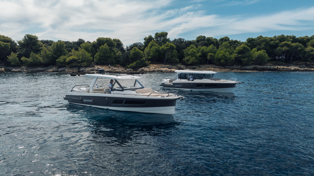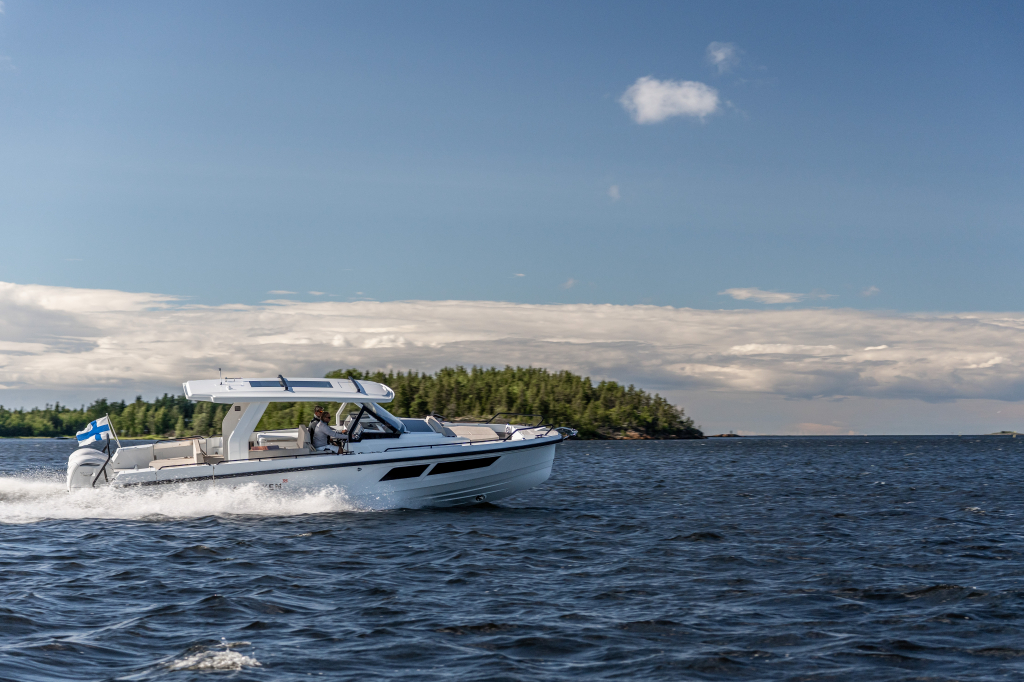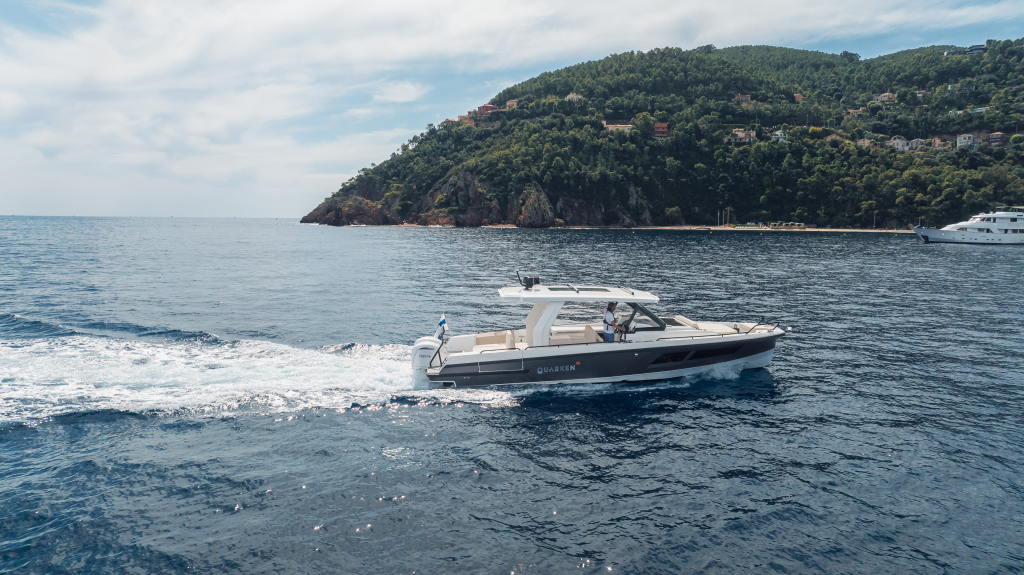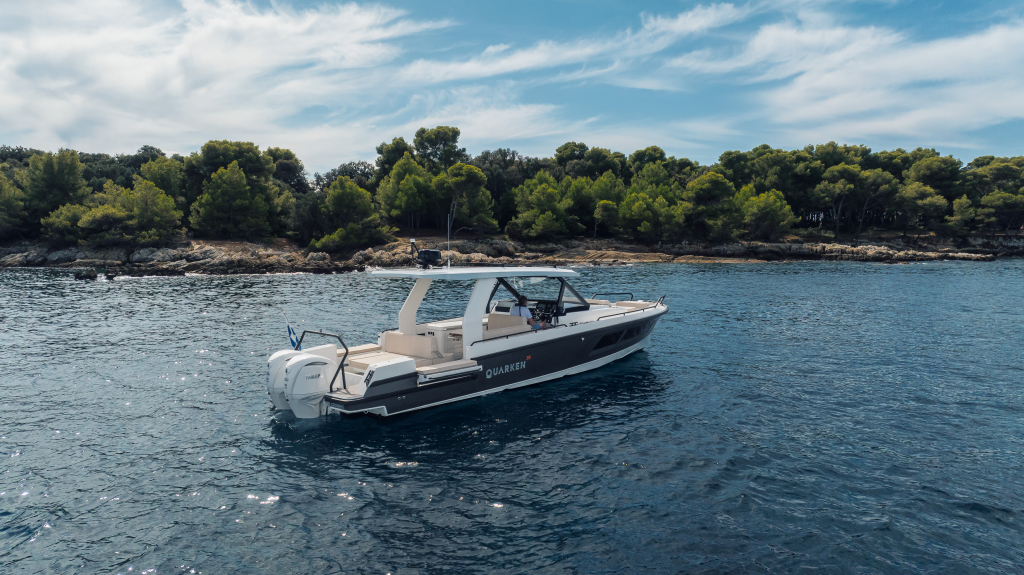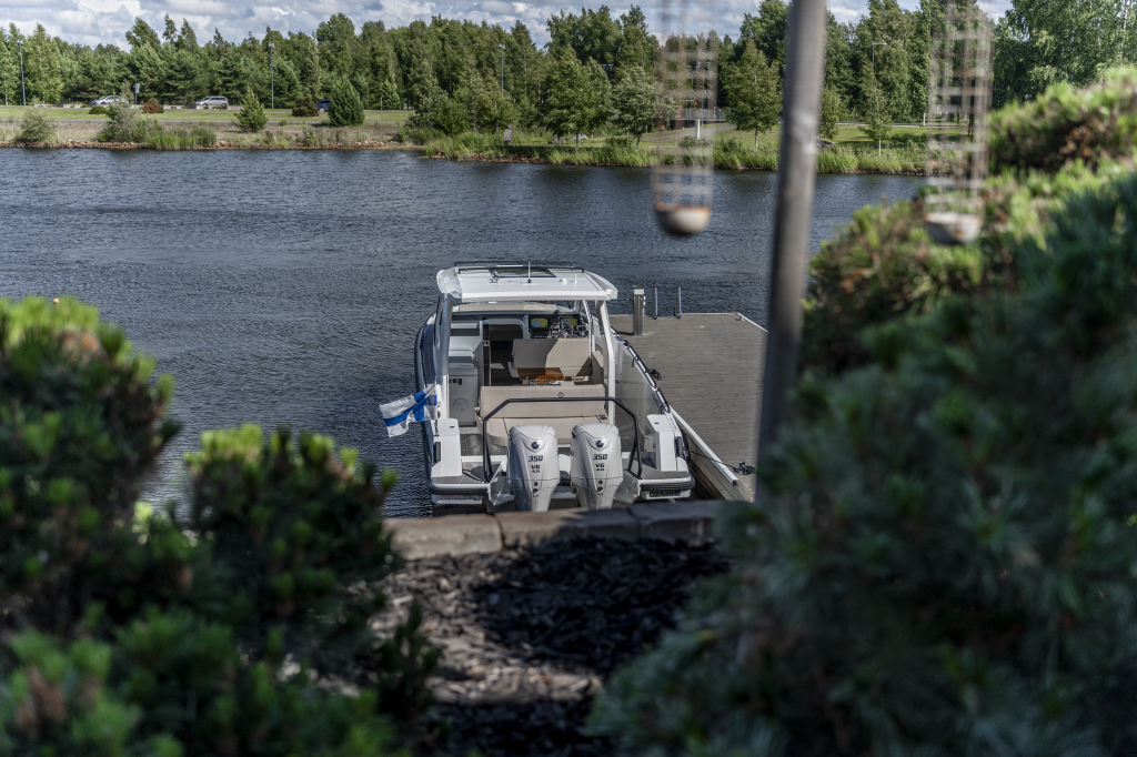 The 35 Sport Tourer shows how sophisticated Nordic design and solutions can be combined with superior performance for an unforgettable on-water experience. Cleverly designed seating arrangements offer plenty of relaxation space. The standard wet bar is well-equipped with storage space, a fridge and fresh water. The Quarken 35 Sport Tourer is designed, produced and assembled in Finland. The twin-step hull is manufactured by vacuum infusion technology that offers benefits as thickness control of the GRP and quality consistency in the production process. The outcome is a strong, nimble and lighter hull with lower fuel consumption.