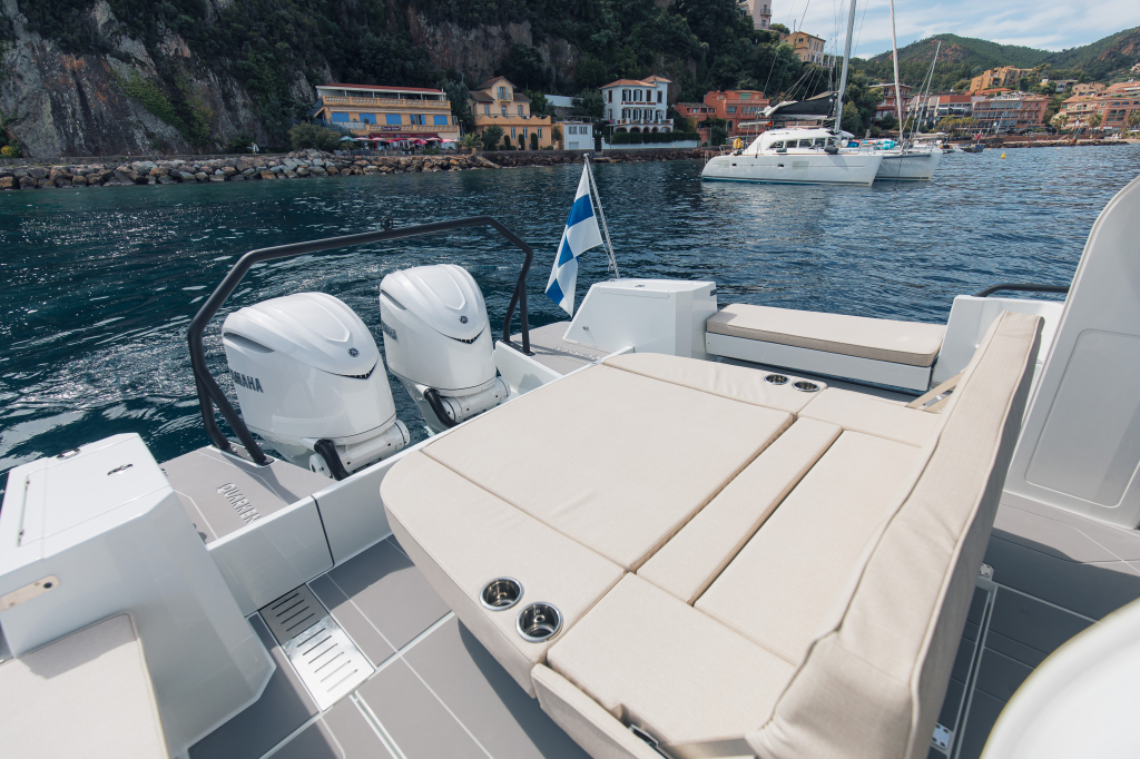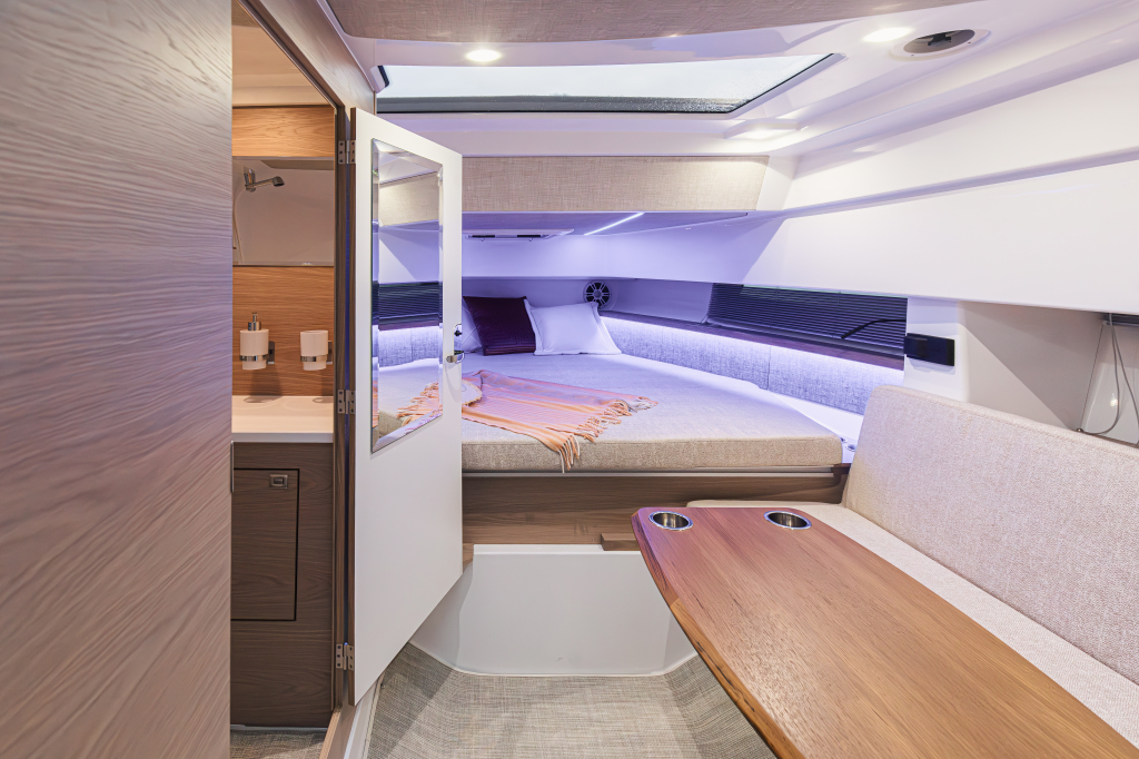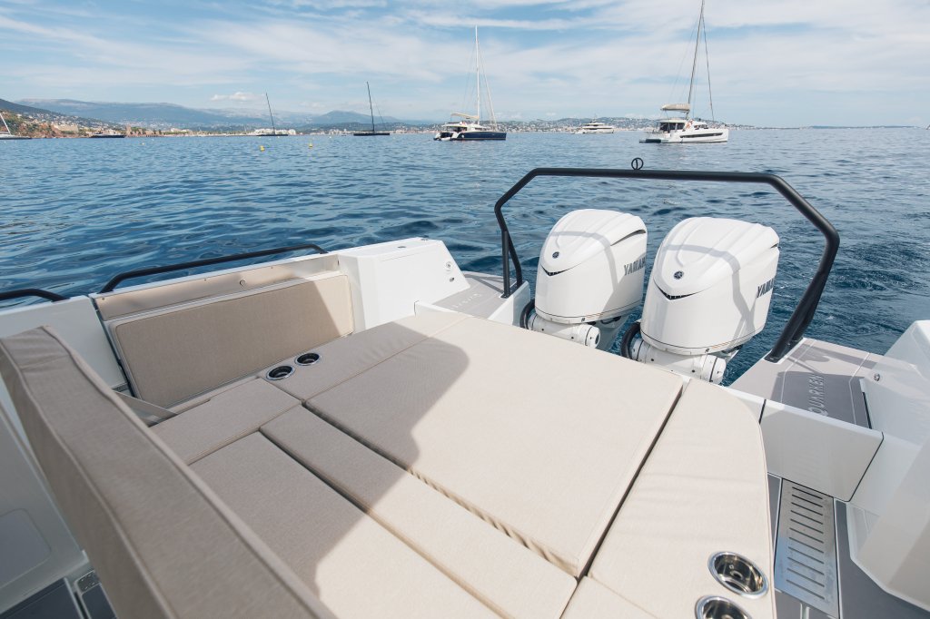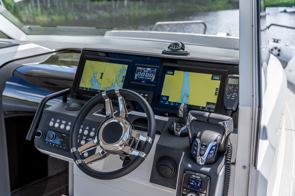 The 35 Sport Tourer is powered by twin Yamaha F300 outboard engines, and as an option an upgrade possibility to twin 350’s is possible. Both pairings provide a confident and dynamic drive. The top speed with F300 engines is 44 knots and the fuel consumption is under 3,0 ltr/ nautical mile (in 3500 rpm). With F350 engines top speed is approximately 50 knots and fuel consumption practically same as with F300 engines.